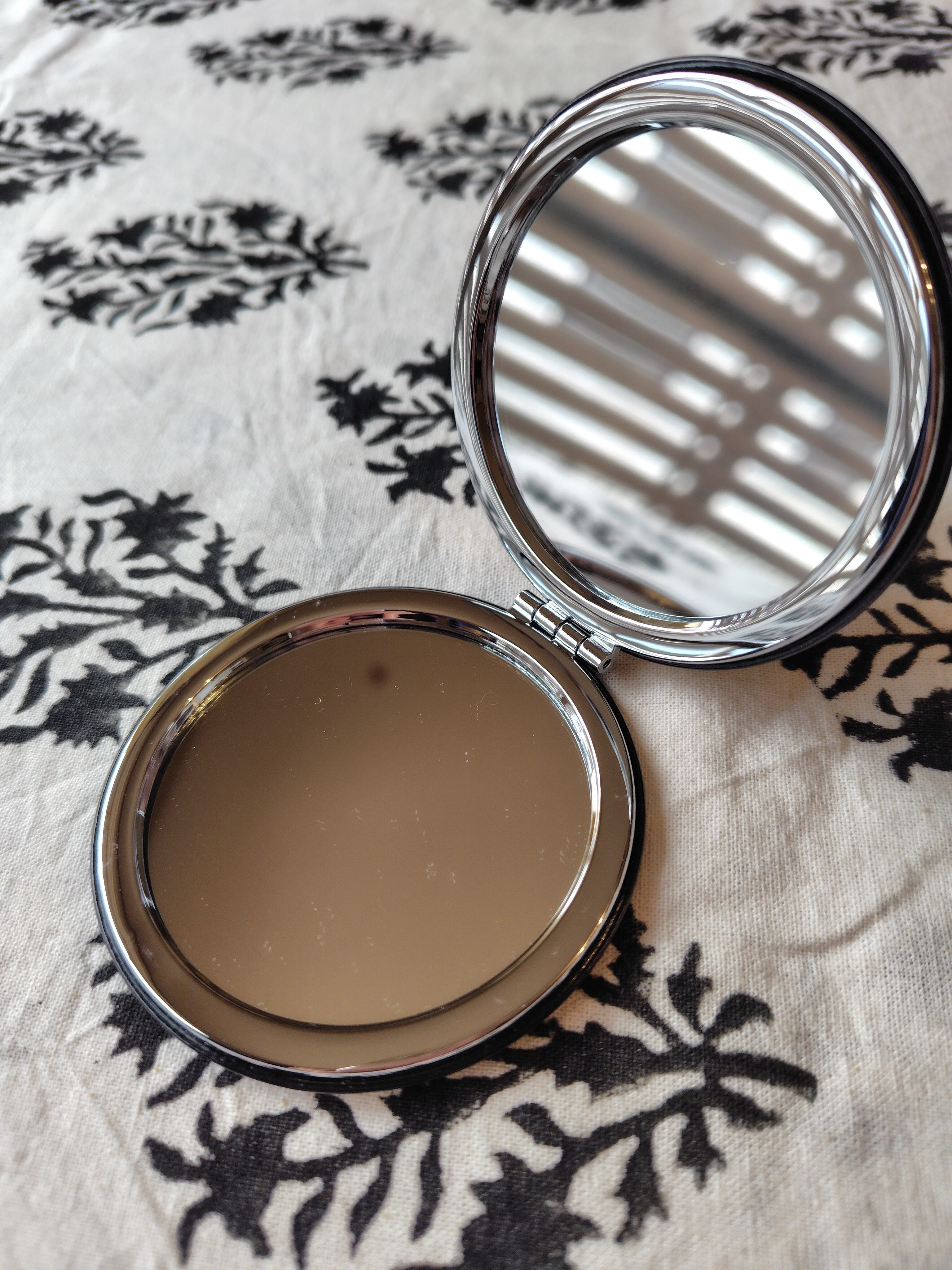 表面は合皮で、下側の鏡は拡大鏡になっています。