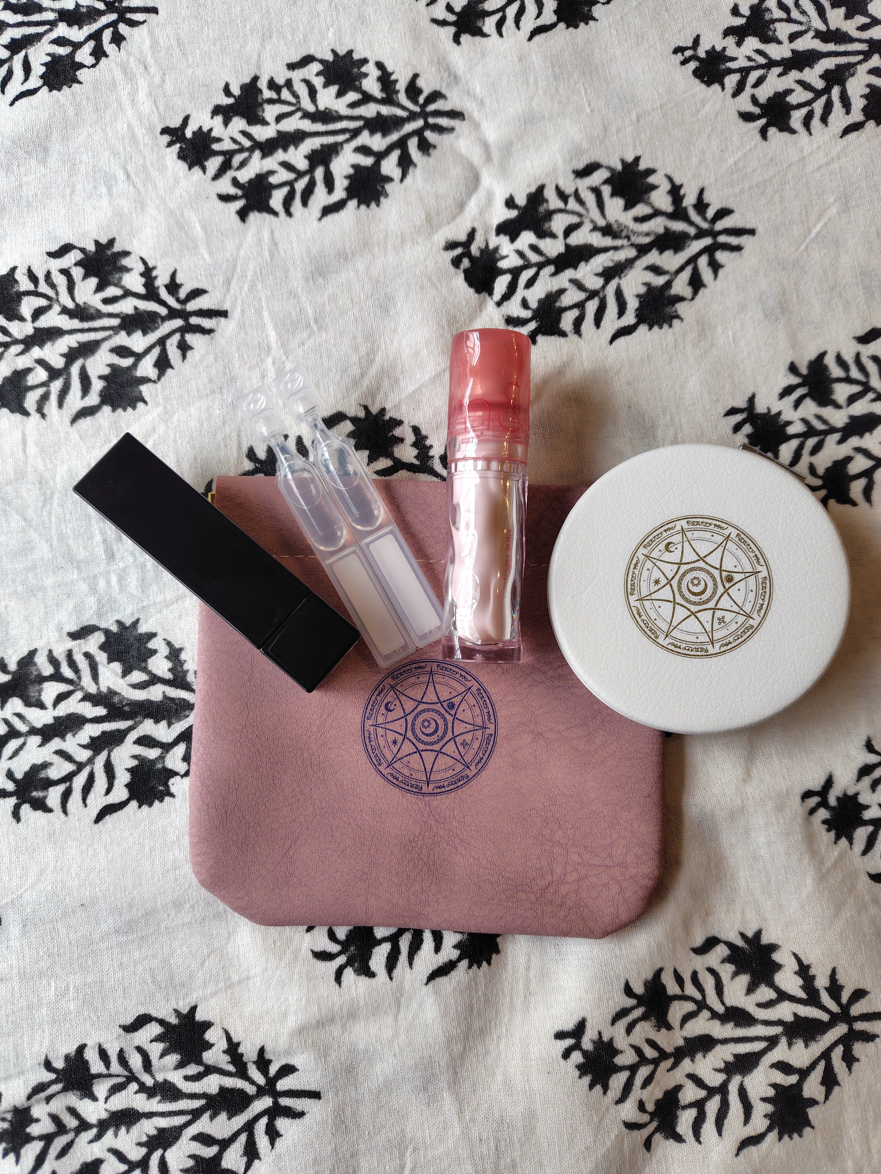 日々持ち歩くものを優しく包み込む魔法陣のポーチは、あなたの大切なものを守り寄り添ってくれる存在として、日々の生活に幻想を添えてくれます。